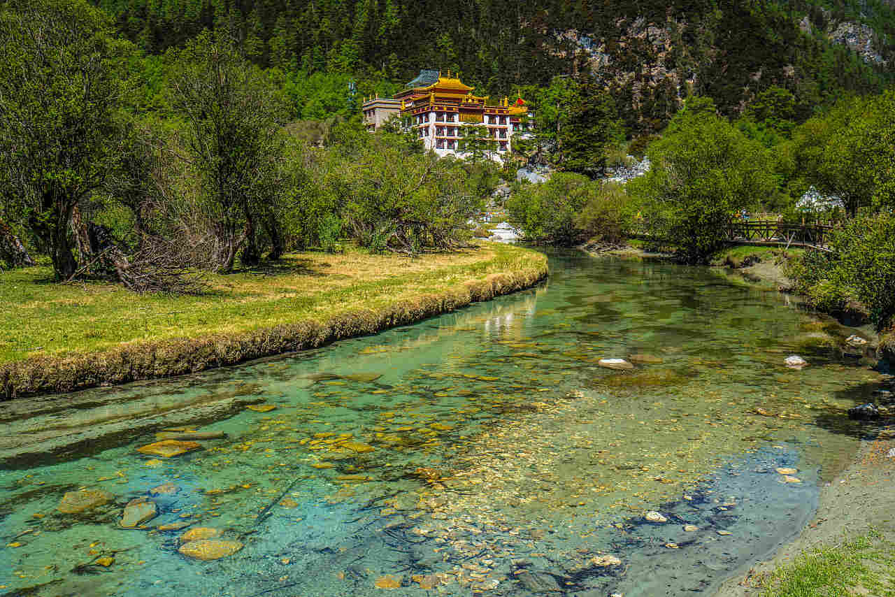 第五天:稻城—傍河青杨林—贡嘎郎吉岭寺—亚丁景区门口—冲古寺—珍珠海—亚丁村
