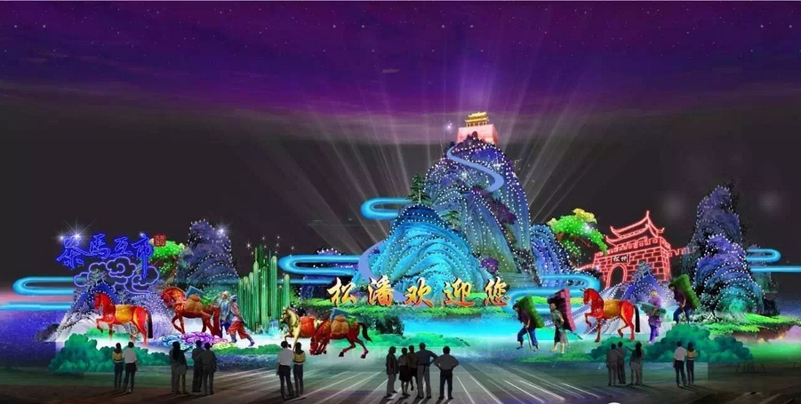 “茶马互市”灯组,将集中表现全国各地群众将商品带到松潘进行交易的场景,展现松潘古城曾作为中原地区与西北少数民族地区商业贸易和文化交流的纽带。