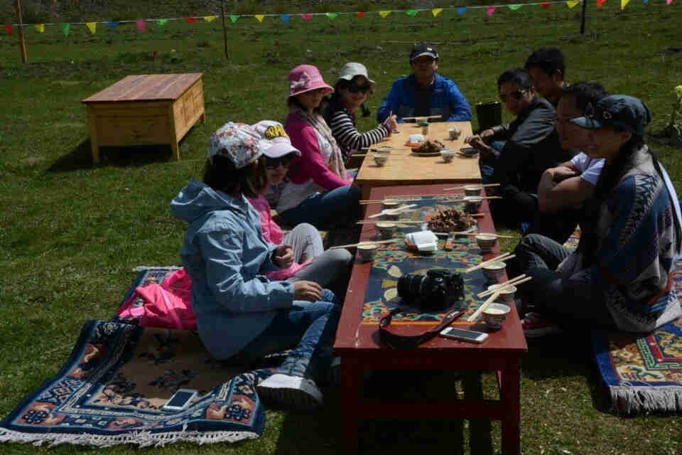 不去黄龙,选择在松潘骑马游的客人烧烤