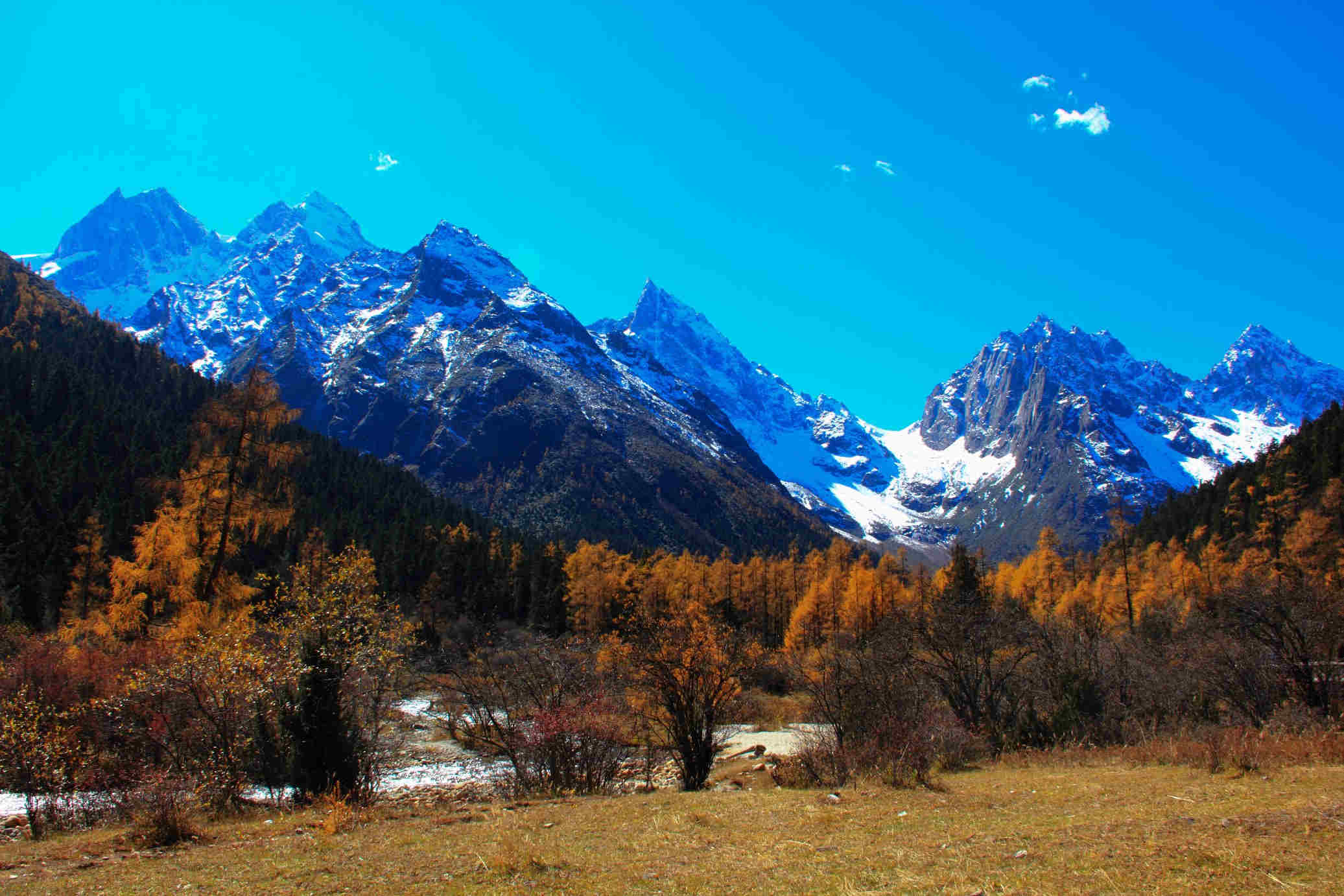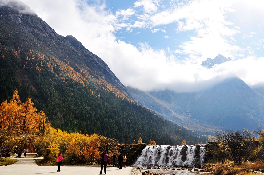 上午:毕棚沟彩林色彩艳丽。这里与其他红叶景区相比,景观更为丰富----有高原湖泊相伴,冰川雪山相依的毕棚够沟红叶显得更加迷人壮观。众人皆知米亚罗红叶的绚烂,而作为一个大地域概念的米亚罗红叶片区,毕棚沟风景区则是其重要的组成部分。每年的10月至11月,恰好是观赏毕棚沟彩林的大好时节,以红枫、鹅掌为代表的红叶彩林届时将山谷装扮的五彩斑斓,加之高处洁白的雪山和冰川,近处碧绿的高山海子,视觉效果十分突出。