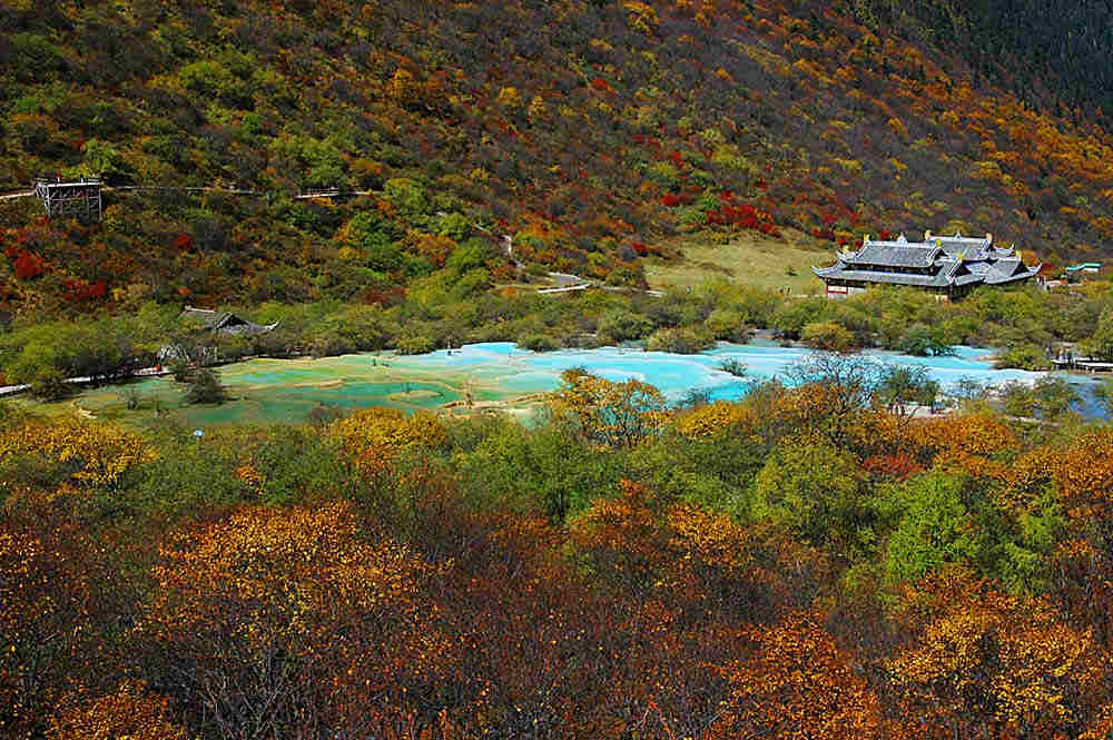 下午:黄龙主要以原始森林、高山湖泊、巨型钙化瀑布、钙化彩池等自然景观为主要特点,融会丰富的动植物资源和民族文化,民族风情于一体,结构独特,风光旖旎,使人流连忘返,途中可远观红军长征纪念碑。黄龙最高海拔4000多米,请提前做了高原反应准备,可根据自己的体力量力而行,最高可步行到黄龙寺,沿途欣赏迎宾池、飞瀑流辉、洗身洞、盆景池、黄龙寺、五彩池等,一般游览时间在3-4小时左右。